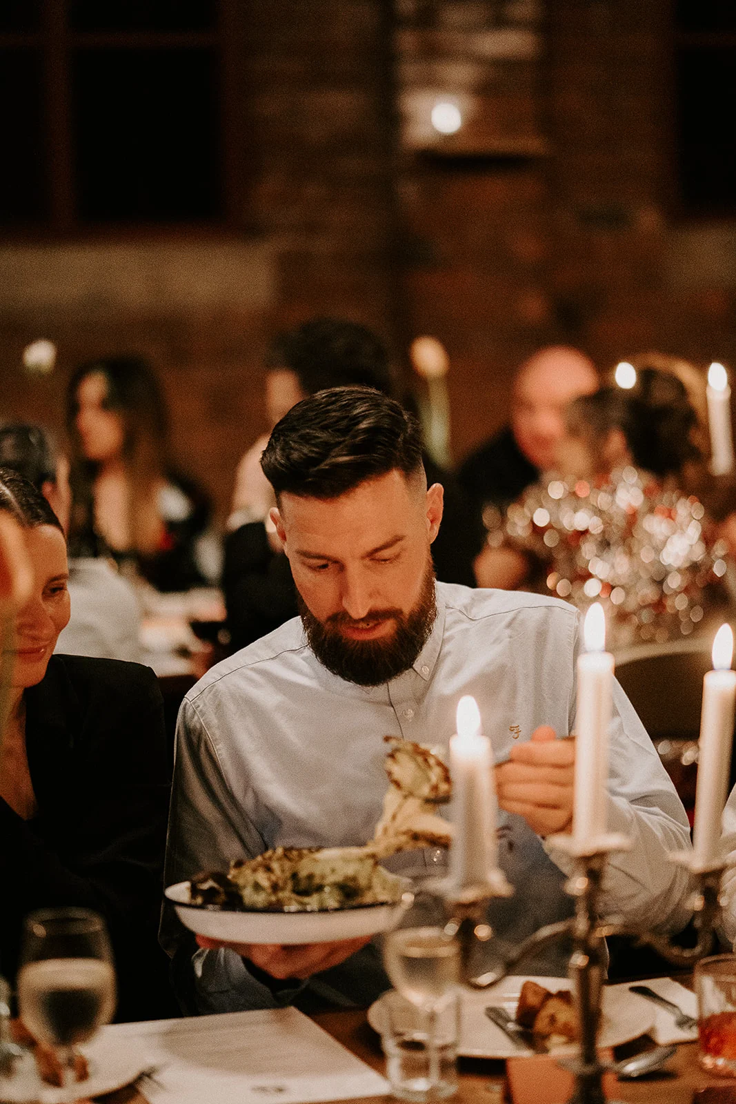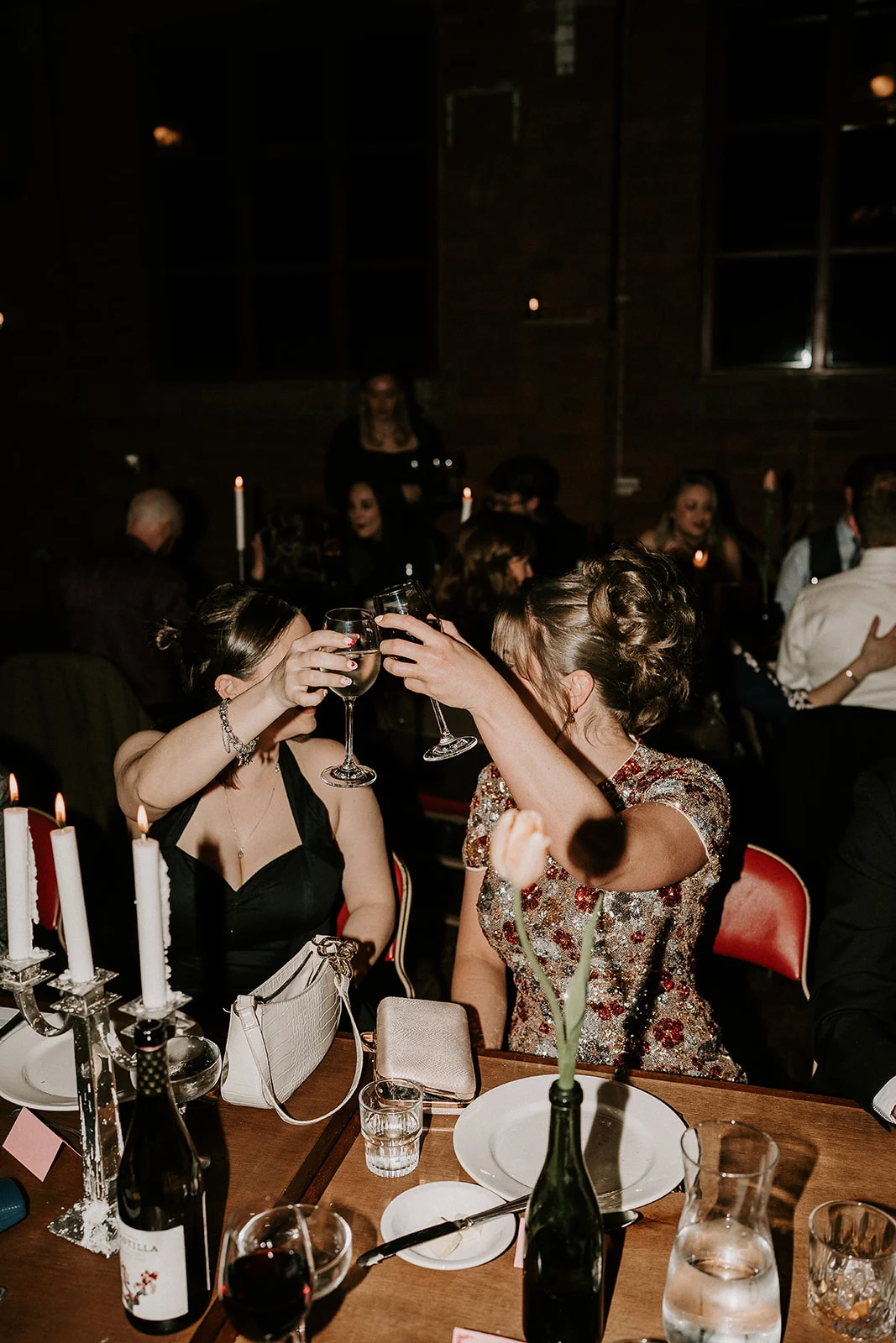 This party was gorgeous in so many ways - using The Clubhouse for gatherings and delicious welcome cocktails - Rhubarb Negronis and Winter Margs - then moving up to The Chapel for a candlelit vegetarian feast...