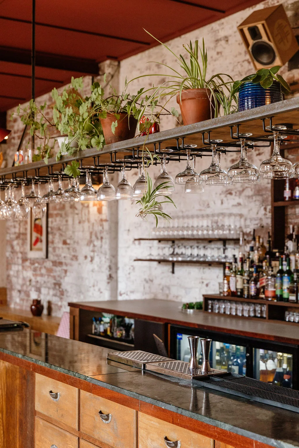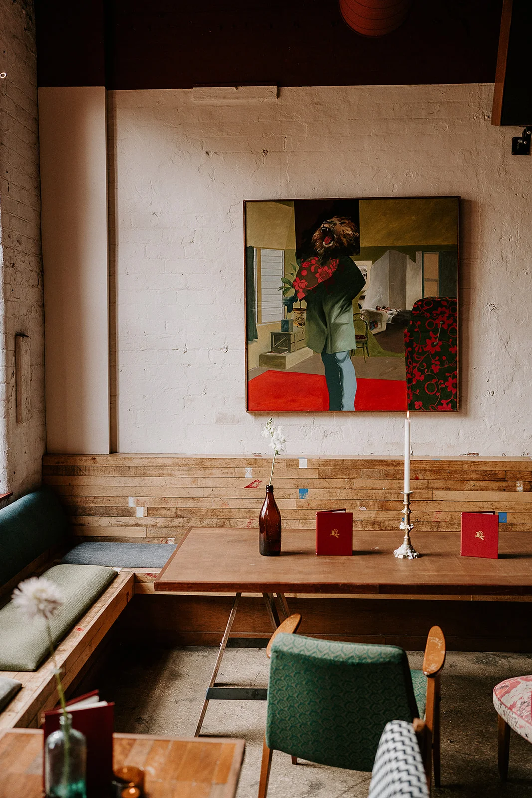 Filled with positive energy, oils and art on the walls, living plants, curious corners and a bar made from reclaimed and forgotten timbers...Don't forget the antique carved glass feature behind the bar - salvaged from a Park Lane Hotel.